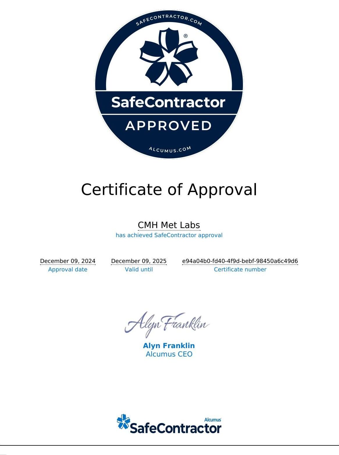 Sanjay SharmaTrustindex verifies that the original source of the review is Google. Birla Carbon Hamilton worked with CMH for testing their boiler tube . CMH Metlabs issued a report for their testing. The report was good and covered all technical requirements. We will work with them in future. Don WebsterTrustindex verifies that the original source of the review is Google. CMH Metlabs did a number of chemical analysis for us over the last few weeks. The prices are good and the turn-around time was excellent. We needed some clarity on the results from the tests. The technical people at CMH responded quicky and our questions were answered. We discovered a couple of typos in the reports but it did not affect the over all accuracy of the report. We are looking forward to continuing our analyses with CMH. Chris WTrustindex verifies that the original source of the review is Google. I highly recommend this company. Their testing is very detailed and thorough. Etienne FortierTrustindex verifies that the original source of the review is Google. Submitted metal sample for testing, obtained test results promptly and professionally. Highly Recommended. Carlos PereiraTrustindex verifies that the original source of the review is Google. The team at CMH Metlabs was very accommodating with our last-minute FTIR and TGA analysis request and turned the testing around in record time (Next business day when the original estimate was 5 working days). Fast and Precise results, very reasonably priced. J NTrustindex verifies that the original source of the review is Google. Service was prompt and professional. Thank you. Amir MirzaeiTrustindex verifies that the original source of the review is Google. I received timely feedback and reliable results which was all that I wanted. Paul WaldnerTrustindex verifies that the original source of the review is Google. Very professional, thorough, reliable, and affordable. No need to look furthur Christopher PersaudTrustindex verifies that the original source of the review is Google. Great team to work with. Atta was very informative and provided useful advice regarding testing methods and protocols to aid with my investigation. clay taylorTrustindex verifies that the original source of the review is Google. Great service throughout the entire process and detailed results in our final report.