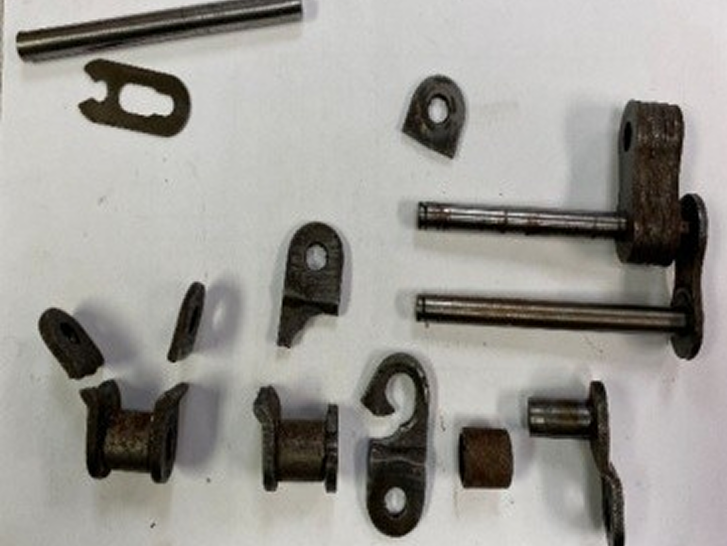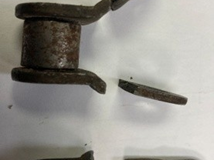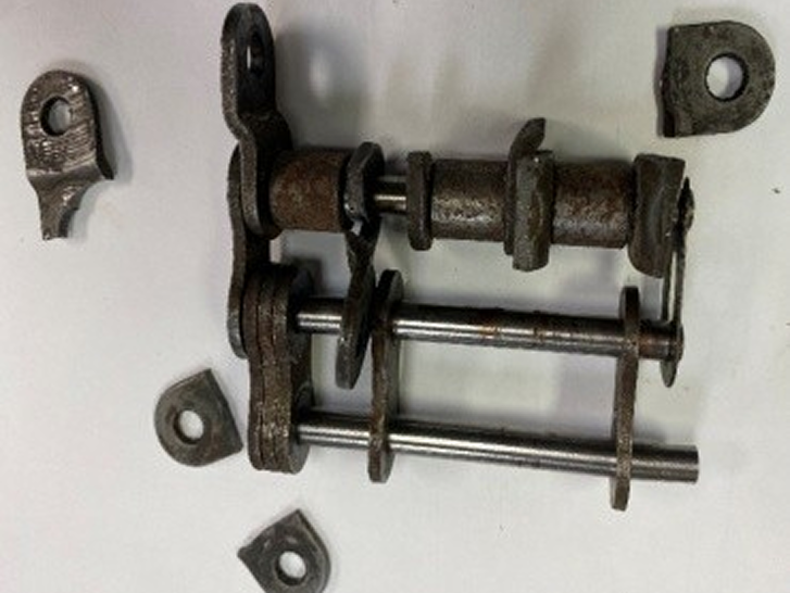 The first stage involved a visual inspection of the chains. The fractured assembly showed extensive rusting, which limited the ability to gather direct information from the fracture surface. However, close observation suggested that one link fractured first, triggering a cascade of overload failures in adjacent links. This type of sequential failure is common in systems where one weak point leads to progressive collapse.