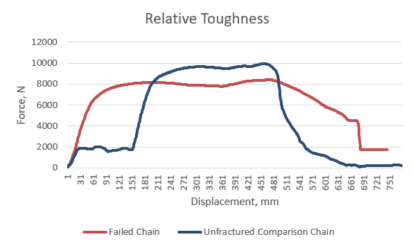 - Relative toughness tests confirmed that the failed chain had adequate, if not superior, properties compared to the comparison set.