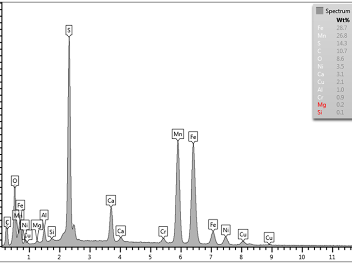 Figure 4: EDS spectrum showing Mn and S inclusions.