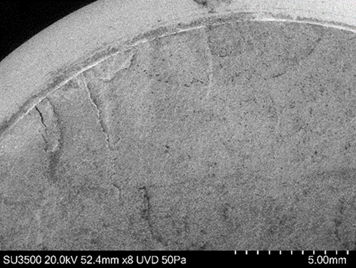 SEM confirmed fatigue as the main mode of failure. The fracture surfaces displayed rust and oxidation, which limited detailed observation. EDS detected inclusions containing manganese and sulfur — potential contributors to crack initiation.